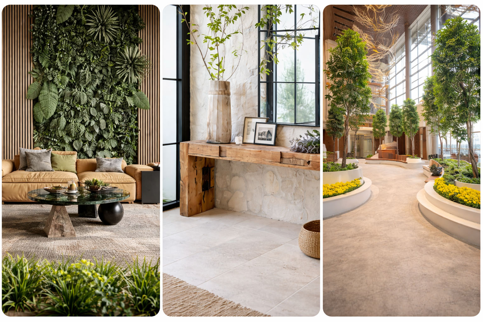 - İç mekânda bitki duvarları ve doğal doku sürekliliği