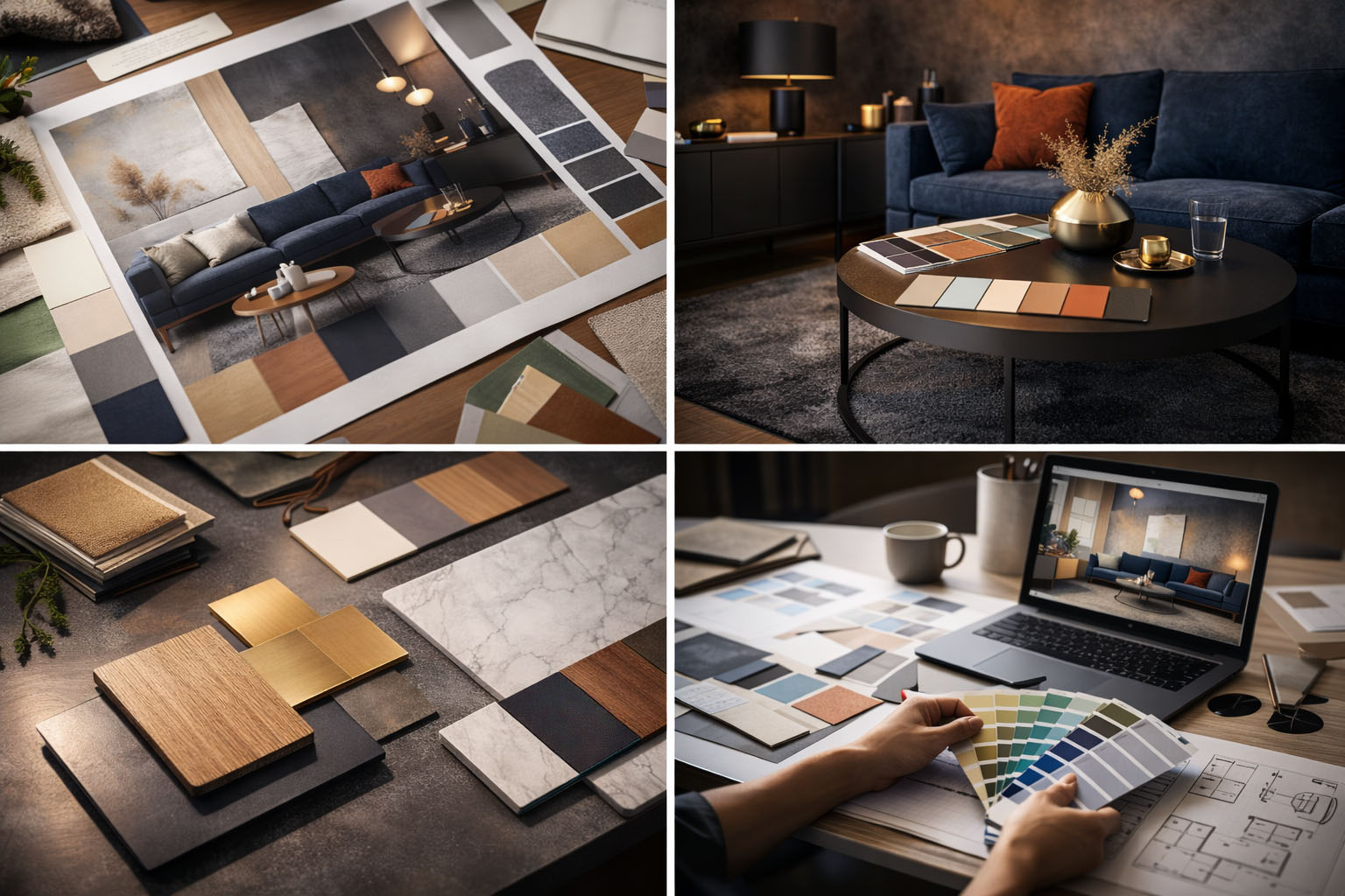 Renk seçimi, profesyonel iç mimarlık projelerinde konsept tasarım aşamasında belirlenir. Moodboard çalışmaları, numune uygulamalar ve 3D görselleştirmeler ile renklerin mekân üzerindeki etkisi önceden analiz edilir.